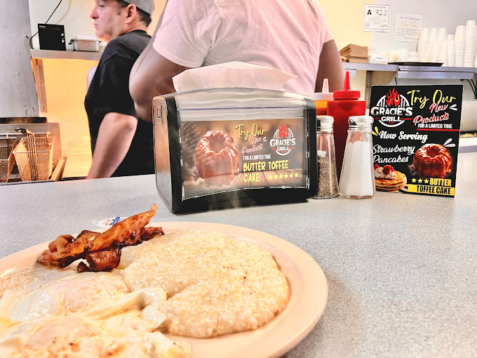 The menu at Gracie’s Grill is a hearty mix of all-American classics done right. Their Hot Dog and Cheeseburger with Fries combo is a local favorite - simple, flavorful, and made just the way you’d expect from a hometown grill. Another must-try is the Cheese Burger Steak with Okra and Rice, a plate that perfectly balances juicy, grilled beef with a side of southern-style okra that brings out the comfort-food magic. For breakfast lovers, the Country Ham with 2 Eggs is a true morning winner, pairing savory ham with perfectly cooked eggs that’ll get your day started right.
